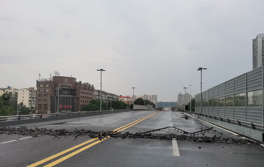 近日,根據(jù)市上安排,恒通建工在實(shí)施的西山立交病害整治工程中發(fā)現(xiàn)平政高架橋段,受持續(xù)高溫氣候影響,在熱脹與汽車荷載等因素疊加作用下,導(dǎo)致橋梁混凝土膨脹,加之伸縮縫淤塞時(shí)間較長,因此路面伸縮縫出現(xiàn)鼓包現(xiàn)象。