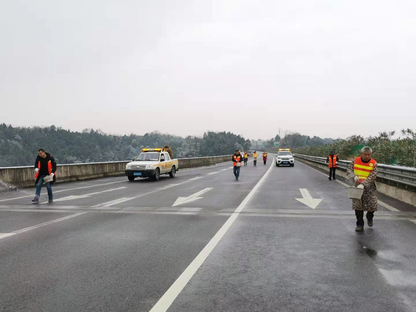 為防止路面結冰引發(fā)交通事故,確保過往行人和車輛安全,1月8日至12日,路橋公司下屬養(yǎng)護公司購買了大量工業(yè)用鹽,及時組織10余名工作人員對管養(yǎng)范圍內(nèi)的綿遂高速公路結冰路面逐一進行除冰處置,并在結冰路段前設置了警示標志和警示錐錐桶,及時的提醒了過往車輛減速慢行,此次累計清理結冰路面約10公里。同時,路橋公司對管養(yǎng)范圍內(nèi)的六條國省干線加強巡查,謹防路面結冰,遇到險情及時采取管控措施,為廣大市民出行安全保駕護航。