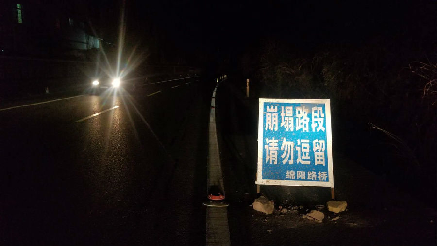 4月16日21:10時(shí),路橋公司管養(yǎng)路段XB03綿鹽路K61+700右側(cè)上邊坡因山體巖石風(fēng)化嚴(yán)重發(fā)生垮塌,垮塌山石滾落路面,導(dǎo)致右側(cè)機(jī)動(dòng)車道臨時(shí)斷道,過往車輛通行困難,且夜間通行存在極大安全隱患。