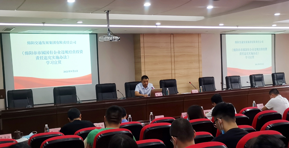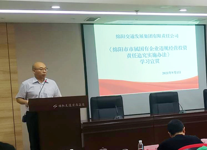 ? ? ? 為務(wù)實推進法治國企建設(shè),推動交發(fā)集團全面依法治企、依法合規(guī)經(jīng)營和依法規(guī)范管理等工作深入開展,通過集中法律培訓(xùn),不斷提升領(lǐng)導(dǎo)干部的法治思維和依法治企能力,根據(jù)市國資委《市屬國有企業(yè)2021年法治工作要點》和集團公司《2021年法治工作要點》的要求與安排。9月1日下午,集團在三樓大會議室組織召開了“國有企業(yè)合規(guī)管理”與“《綿陽市市屬國有企業(yè)違規(guī)經(jīng)營投資責任追究實施辦法》學(xué)習(xí)宣貫”專題培訓(xùn)會?!?br />