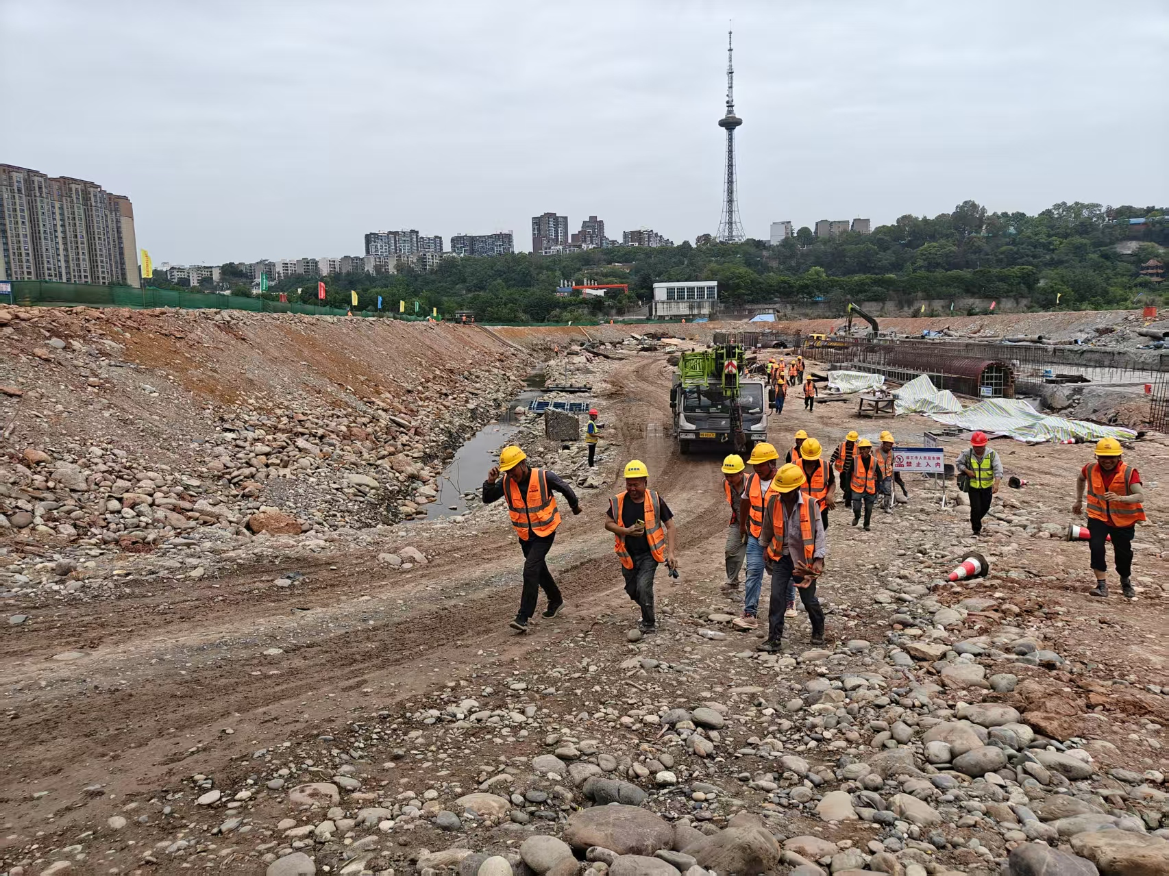 此次演練模擬極端天氣下涪江水位驟漲的突發(fā)險情,重點開展人員疏散及施工機械撤離等科目的實戰(zhàn)演練。隨著演練開始信號發(fā)出,項目通訊聯(lián)絡組高效傳達指令,應急搶險、醫(yī)療救護、警戒疏散等五個應急小組聞令而動,展開一場與時間賽跑的防汛搶險攻堅戰(zhàn)。