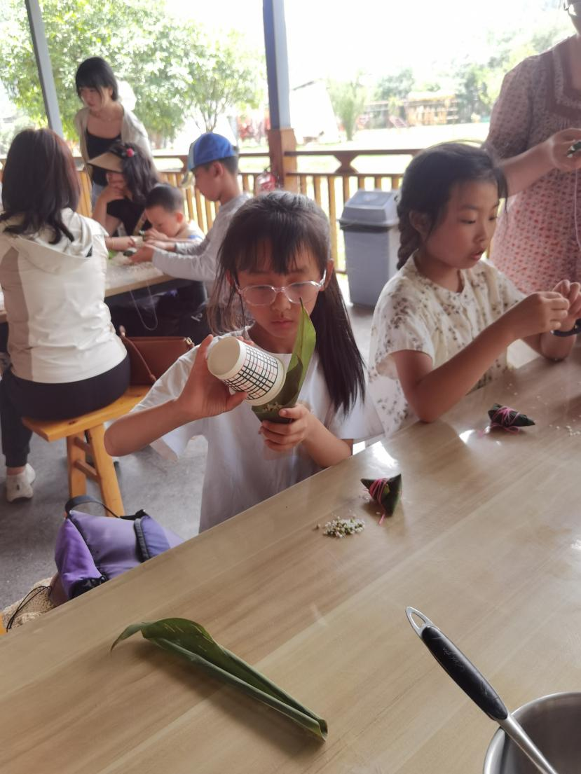 粽葉飄香傳古韻,巧手編織愛國情。在氤氳的茶香尚未散去時(shí),一場別開生面的端午包粽活動又將親子互動的暖意推向高潮。孩子們圍坐在鋪滿青綠粽葉的木桌前,聆聽志愿者講述屈原的愛國故事與端午習(xí)俗,稚嫩的臉龐上寫滿對傳統(tǒng)文化的向往。家長手把手教孩子將糯米與紅豆填入粽葉,折葉、纏線、打結(jié),每一個步驟都流淌著千年的文化血脈。當(dāng)棱角分明的粽子在孩子們掌心誕生時(shí),他們不僅學(xué)會了傳統(tǒng)技藝,更在粽葉的清香中觸摸到“家國情懷”的深刻內(nèi)涵?;顒蝇F(xiàn)場,五彩絲線纏繞的粽子與茶園蒼翠相映成趣,愛國精神與文化傳承如同粽米般緊密相融,在親子協(xié)作間代代相傳。