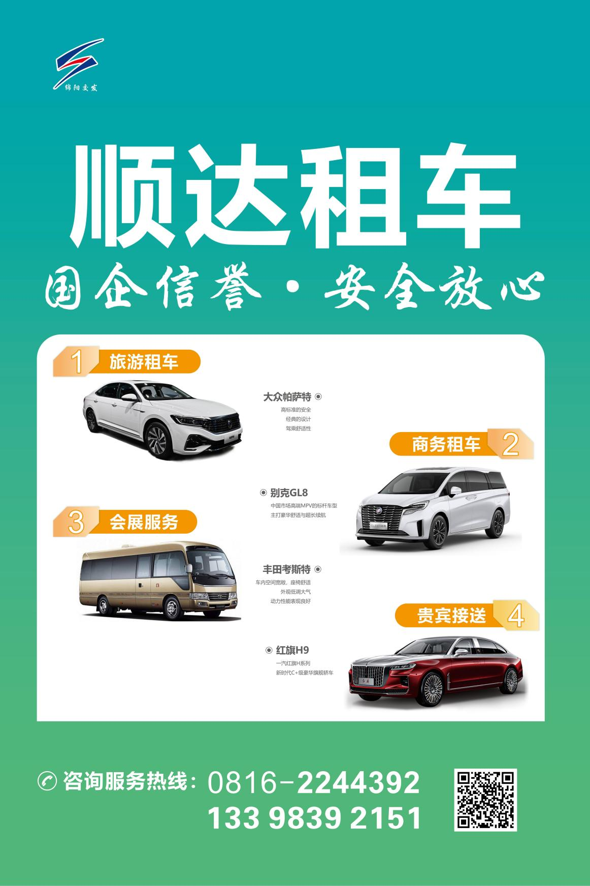 專注本土更專業(yè)。順達(dá)租車是綿陽全資國企,依托本土資源優(yōu)勢可提供“全車型矩陣+全城網(wǎng)絡(luò)”服務(wù),車型覆蓋5座至53座,服務(wù)場景囊括機(jī)場(高鐵)接送、商務(wù)接待、會(huì)議通勤、活動(dòng)會(huì)展、企業(yè)班車等。配備持有營運(yùn)資質(zhì)的專業(yè)司機(jī)團(tuán)隊(duì),駕駛經(jīng)驗(yàn)豐富,職業(yè)素養(yǎng)高,熟悉綿陽交通、線路、景點(diǎn)、美食等多方面信息,為旅客提供中國唯一科技城正確打開方式。