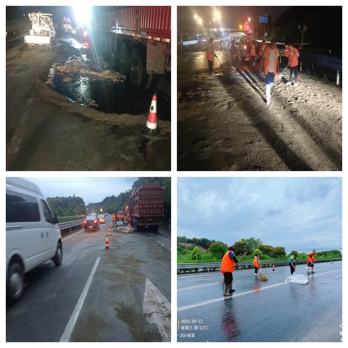 9月17日凌晨3時(shí),路橋集團(tuán)管養(yǎng)道路S205線K38處一運(yùn)輸菜籽油貨車發(fā)生事故,大量油污泄漏至路面,污染面積達(dá)1500余平方米,嚴(yán)重威脅交通安全。