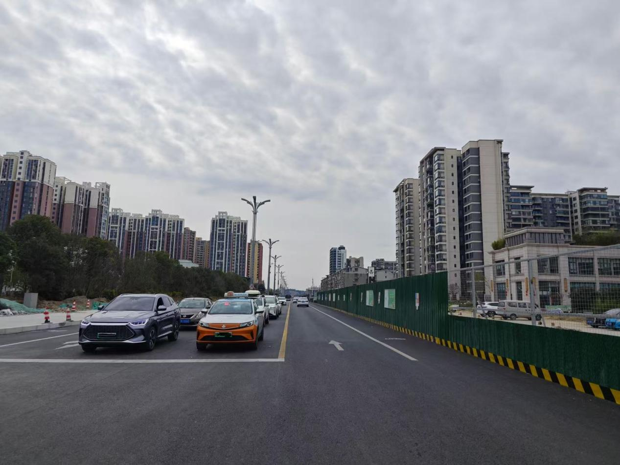 目前,項目改建段西側(cè)道路施工正加快推進中,東側(cè)已通車半幅道路路面平整、臨時標識標線清晰,車輛通行順暢有序,有效提升了周邊居民出行效率與城南工業(yè)園區(qū)物流運輸能力。
