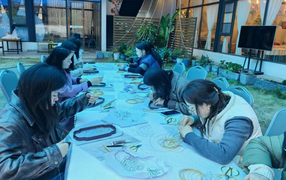 活動(dòng)現(xiàn)場,手作老師首先對(duì)掐絲琺瑯工藝進(jìn)行了簡要講解,并細(xì)致演示了關(guān)鍵步驟。在老師的指導(dǎo)下,大家全神貫注地投入到創(chuàng)作中去,小心翼翼地掐絲、點(diǎn)藍(lán),將一根根細(xì)銅絲彎曲成精美的圖案,再填入五彩斑斕的顏料,每一步都凝聚著專注與耐心。經(jīng)過一番精心制作,一件件流光溢彩的成品驚艷亮相。這些獨(dú)一無二的作品,不僅浸潤著女職工們的匠心巧思,更承載著對(duì)美好生活的無限熱愛。