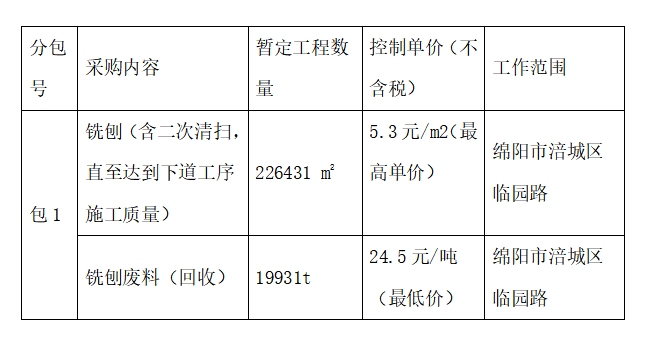 1、采購(gòu)范圍:臨園路道路提升工程路面物資設(shè)備供應(yīng)服務(wù),包含銑刨、銑刨回收等物資設(shè)備的供應(yīng),共1個(gè)采購(gòu)包,詳見附件1 :工程物資采購(gòu)招標(biāo)控制價(jià)清單;