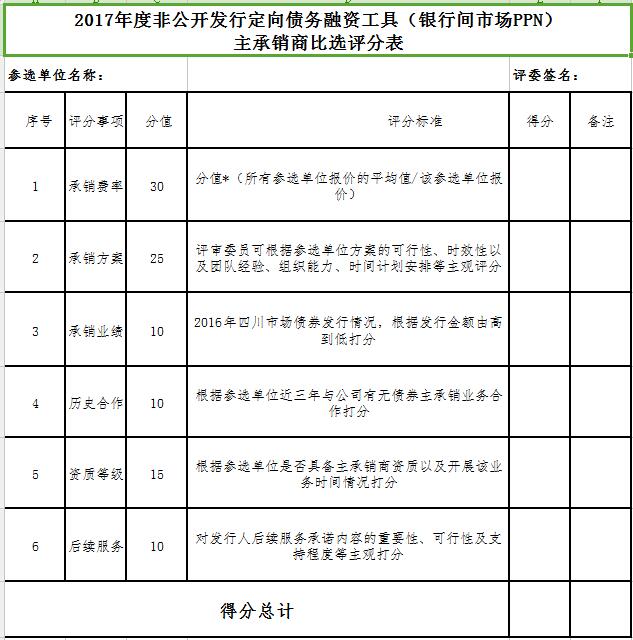 四、如有意參加比選的承銷商所報送材料不符合上述要求或符合上述條件的承銷商不足三家,本公司將采取商務(wù)競談的方式確定本次債券發(fā)行的承銷商。