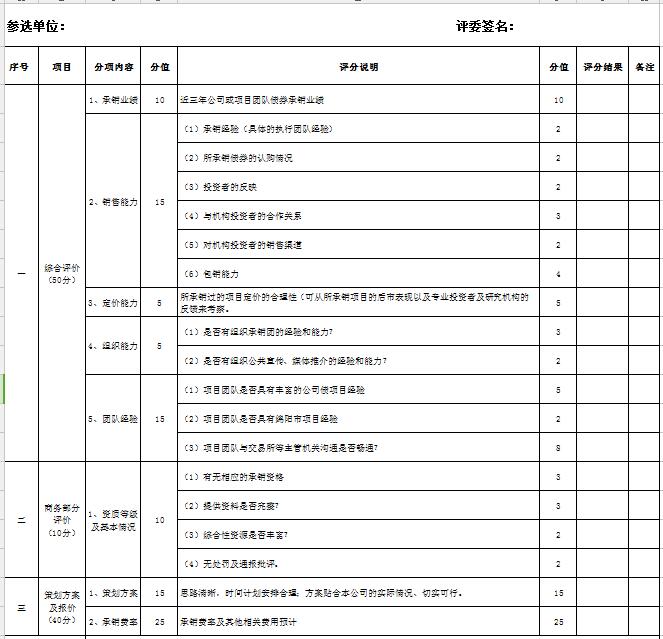 二、主承銷商比選的要求