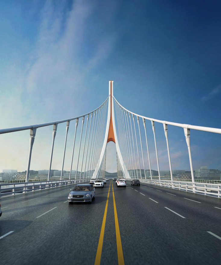 綿陽(yáng)市青石路涪江大橋是科技城新區(qū)北翼橫跨涪江、聯(lián)系涪城青義片區(qū)、游仙石馬片區(qū)的重要橋梁。橋梁北距綿廣高速公路大橋1.9公里,南距二環(huán)路跨江橋1.5公里,向東連接綿江路、向西連接科學(xué)城大道。橋梁紅線(xiàn)寬度為40米,主橋采用雙向六車(chē)道,雙側(cè)設(shè)置非機(jī)動(dòng)車(chē)道、人行道。